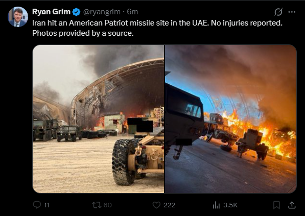 Patriot missiles are so combustible. It's fun to watch American assets go up in smoke.