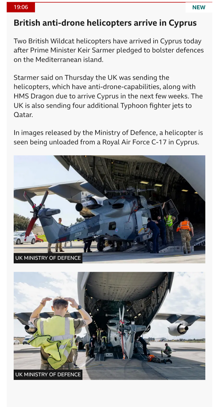 >British anti-drone helicopters arrive in Cyprus