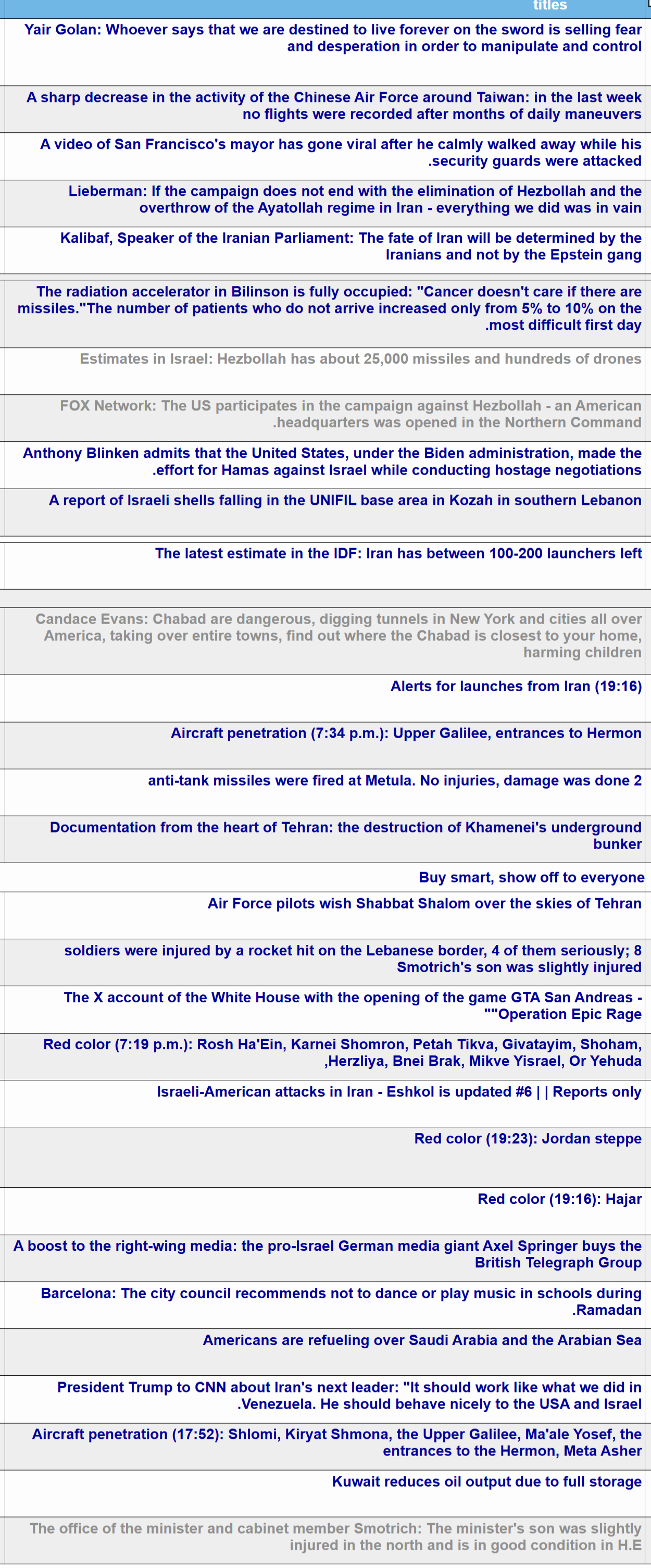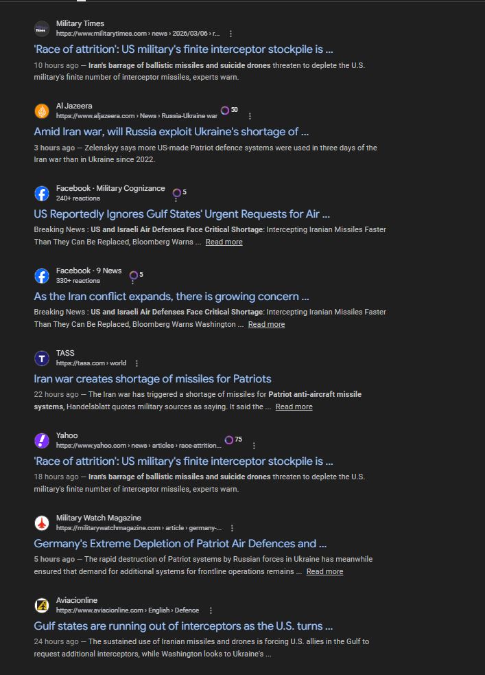 >>530062743RECAP ▶Week: 1>Iran's ballistic missile attacks have declined by 90% since the first day of the war - Pentagon>30 Iranian warships and a submarine has been sunk in the Gulf of Oman — CENTCOM>Kurdish forces in Iraq are in talks with the U.S. for a ground military offensive into Iran>Hezbollah joins the war, Israel launches ground invasion of Lebanon and orders evacuation of towns south of the Litani river>Traffic through the Strait of Hormuz is suspended>Iran launches ballistic missiles & drones at: Israel, Saudi Arabia, UAE, Qatar, Kuwait, Bahrain, Oman, Jordan, Iraqi Kurdistan, Cyprus, Turkey and Azerbaijan>Iran's Supreme Leader Ayatollah Ali Khamenei is killed>U.S. & Israel launch a joint regime change operation against Iran, dubbed "Epic Fury"; also targeting Iran-backed militias in Iraq