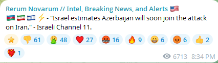 —/ NEW: 'Israel estimates that Azerbaijan will also attack and join the coalition against Iran' – KANN