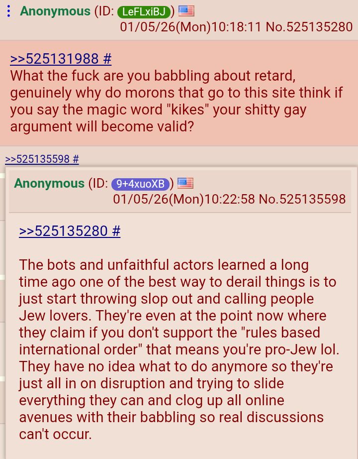 Do you think "kikes worship Moloch and Baal," "Israel should be nuked," and hinting several times that we should exterminate them because oftheir sibversive ideology is an endorsement?