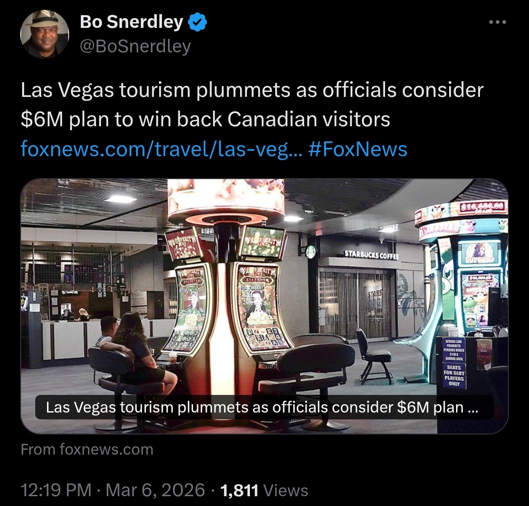 The only way this would work, you could take that 6 million and pay 6 Canadians a million bucks each to come. Tourism won’t recover for at least a generation. That’s assuming everything goes well for the next 20-30 years. Personally, I won’t go to the USA again, not because I’m hostile to them. I’m more concerned about them being hostile to me. Basically, things got weird.