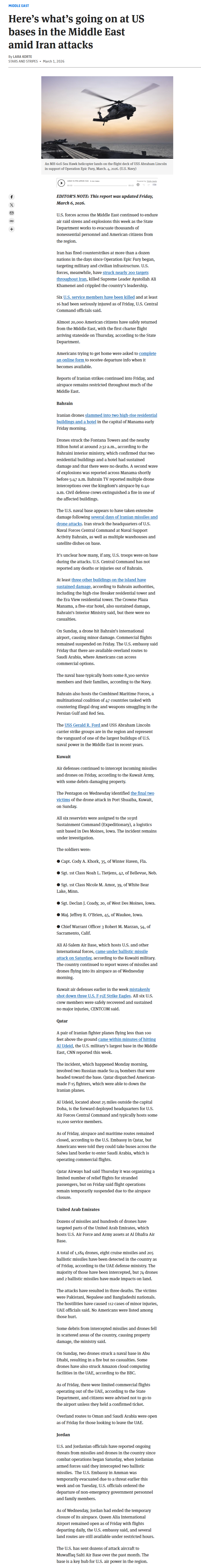 >>530079407RECAP ▶Week: 1>Iran's ballistic missile attacks have declined by 90% since the first day of the war - Pentagon>30 Iranian warships and a submarine has been sunk in the Gulf of Oman — CENTCOM>Kurdish forces in Iraq are in talks with the U.S. for a ground military offensive into Iran>Hezbollah joins the war, Israel launches ground invasion of Lebanon and orders evacuation of towns south of the Litani river>Traffic through the Strait of Hormuz is suspended>Iran launches ballistic missiles & drones at: Israel, Saudi Arabia, UAE, Qatar, Kuwait, Bahrain, Oman, Jordan, Iraqi Kurdistan, Cyprus, Turkey and Azerbaijan>Iran's Supreme Leader Ayatollah Ali Khamenei is killed>U.S. & Israel launch a joint regime change operation against Iran, dubbed "Epic Fury"; also targeting Iran-backed militias in Iraq