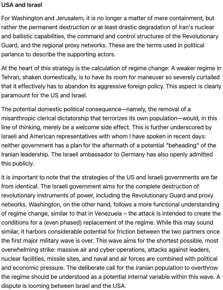 former German minister of defense and boyfriend of our current minister of the economy thinks Israel and the US will have a falling out over strategy