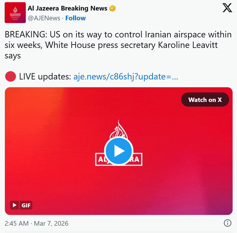 Previous: >>530075238Timeline▶Day: 7>Azerbaijan will attack Iran following the drone attacks earlier this week, according to Israeli assessments - Kann News>US intelligence suggests that China may be preparing to provide Iran with financial support, spare parts, and missiles components - CNN>Crude oil futures stretch toward $90 a barrel>Trump says: "There will be no deal with Iran except unconditional surrender!">Russia is sharing intelligence with Iran to assist in targeting U.S. forces - WaPo>Qatar's energy minister warns oil prices could rise to $150 within two weeks>Azerbaijan is withdrawing diplomats from Iran, closing its embassy in Tehran, and raising the readiness of its military forces>Editor-in-Chief of The War Zone (TWZ) Tyler Rogoway says the U.S. and Israel have not achieved full air supremacy over Iran, despite claims>Major Gulf economies — including Saudi Arabia, the UAE, Qatar, and Kuwait — are reviewing overseas investments as the Iran war strains their finances>UAE is considering freezing billions of dollars in Iranian assets held in the country, and may also seize Iranian ships – WSJ>U.S. strategic bombers arrived in Diego Garcia, massive uptick in bomber sortie rates coming soon▶Livestreamshttps://www.youtube.com/watch?v=4E-iFtUM2kkhttps://www.youtube.com/watch?v=JHwwZRH2wz8▶Telegramhttps://rentry.org/tgnews▶Twitter accounts (using proxy frontend because twitter's UI is trash):https://nitter.net/clashreporthttps://nitter.net/FaytuksNetworkhttps://nitter.net/sentdefender▶Israel Rocket Alertshttps://www.tzevaadom.co.il/en/▶Air Traffichttps://www.flightradar24.com/https://flightaware.com/livehttps://globe.adsbexchange.com▶Maritime Traffichttps://www.marinetraffic.com/https://www.vesselfinder.com/Note: /pig/ is the only general for this event. Do not split it into dueling generals like /uhg/ and /chug/ or turn it into a support thread for either side.NEW BAKER NEEDED
