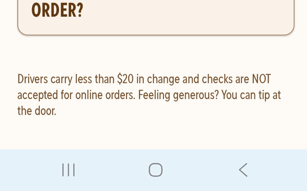 >>530085296Maybe so, but they aren't allowing tips. It says to, "tip at the door". No option to tip on the website.