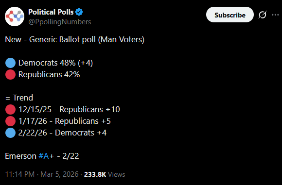 if you lose men as a republican, it's literally impossible for it to be more over