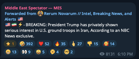 >>530087066>“This story is based on assumptions from anonymous sources who are not part of the President’s national security team and are clearly not read into these discussions,” White House press secretary Karoline Leavitt said in a statement. “President Trump always, wisely keeps all options open, but anyone trying to insinuate he is in favor of one option or another proves they have no real seat at the table.”https://www.nbcnews.com/politics/white-house/trump-privately-shown-serious-interest-us-ground-troops-iran-rcna262176Even if OP's take is bullshit, how is saying Trump has no solid plan at all better?