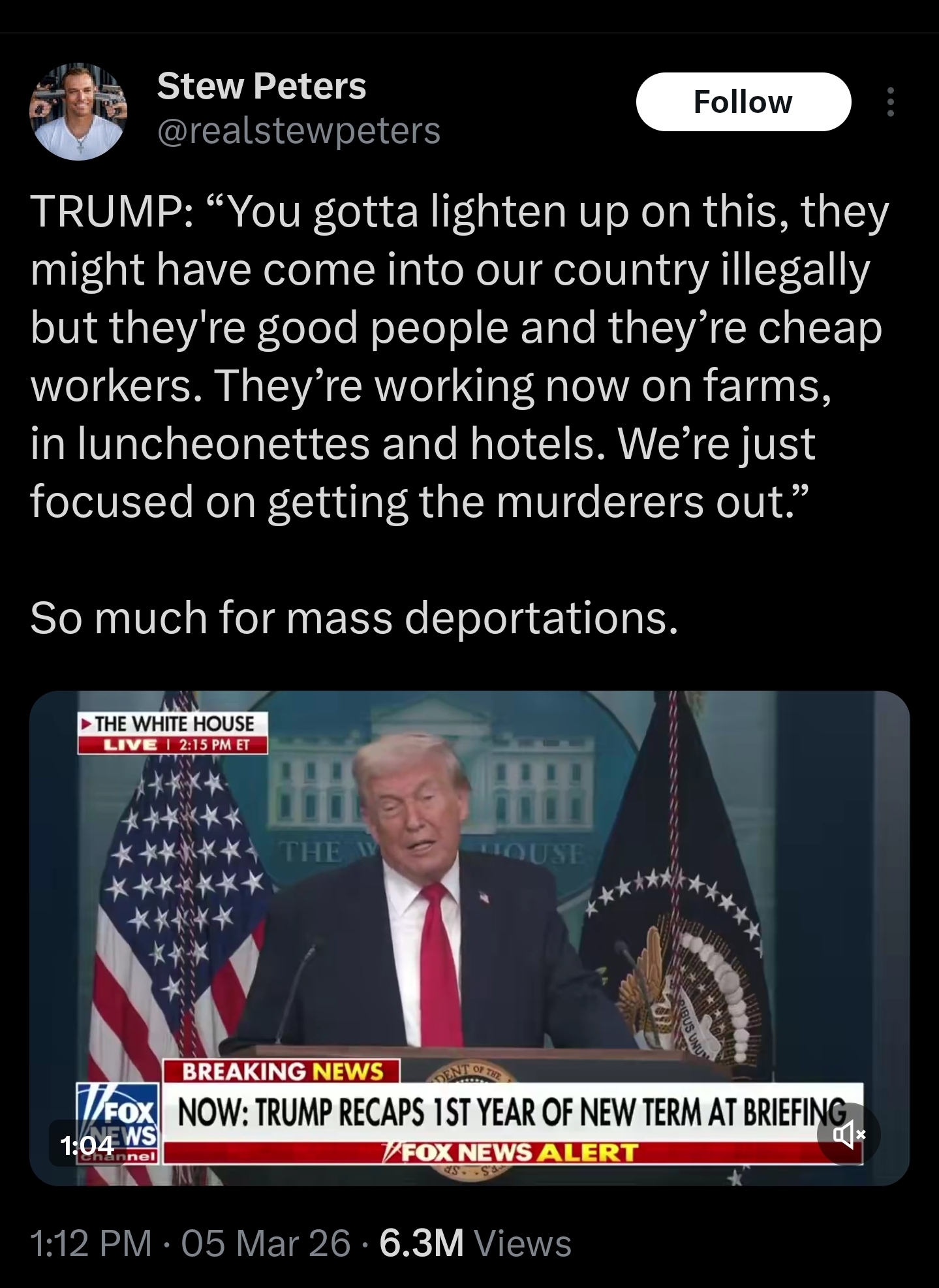 >>530101325>Trump using ICE to deport mexicans is enough for them to kvetchthey literally told him to do thathe makes endless exceptions for them, doesn't touch the ones hiring them at all, leaves their illegal workers alone, and the ICE snatch and grabs look like pure shit optics wiselook just like the Ukraine snatch & grabsand he keeps opening new LEGAL avenues for them to come, like with VenezuelaI'll bet the Iranians eventually get permitted to claim refugee status just like the Venezuelans now canhis only purpose is to nuke the right here