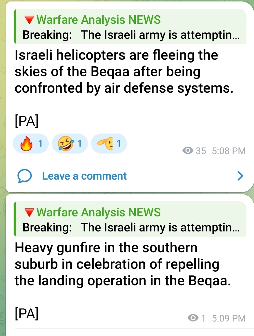 Actually serious situation in Lebanon right now. Israeli unit will not last much longer.