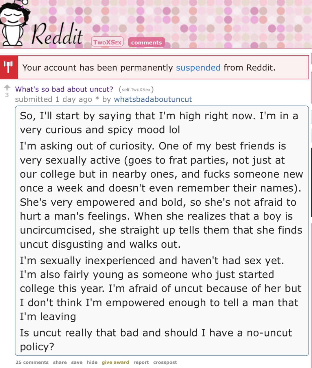 >>530106481>women don't suddenly refuse you because you are uncutUhh… about that…