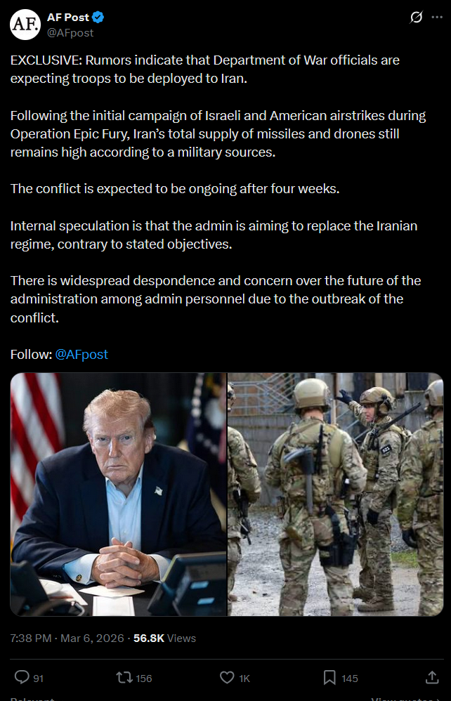 I’ve seen numerous threads saying “Trump has privately considered making use of US soldiers for an Iran ground operation”Do you guys think it will happen?