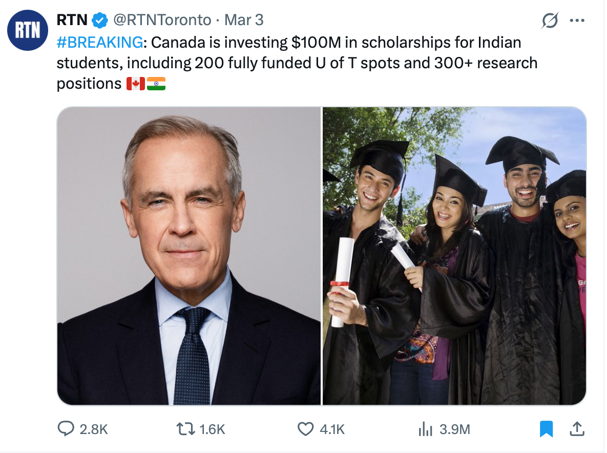 >>530103933>A key component of the new approach is a $100-million scholarship initiative led by the University of Toronto that will support up to 200 Indian students through fully funded study opportunities. The funding is expected to cover tuition and living expenses, with recruitment anticipated to begin ahead of the 2026–27 academic yearThat is actually fucking mental that Canada is doing this. Imagine spending $200m to import students from other countries. There is no world where Indian talent is so exclusive that this is needed. This is buying votes to win numbers.