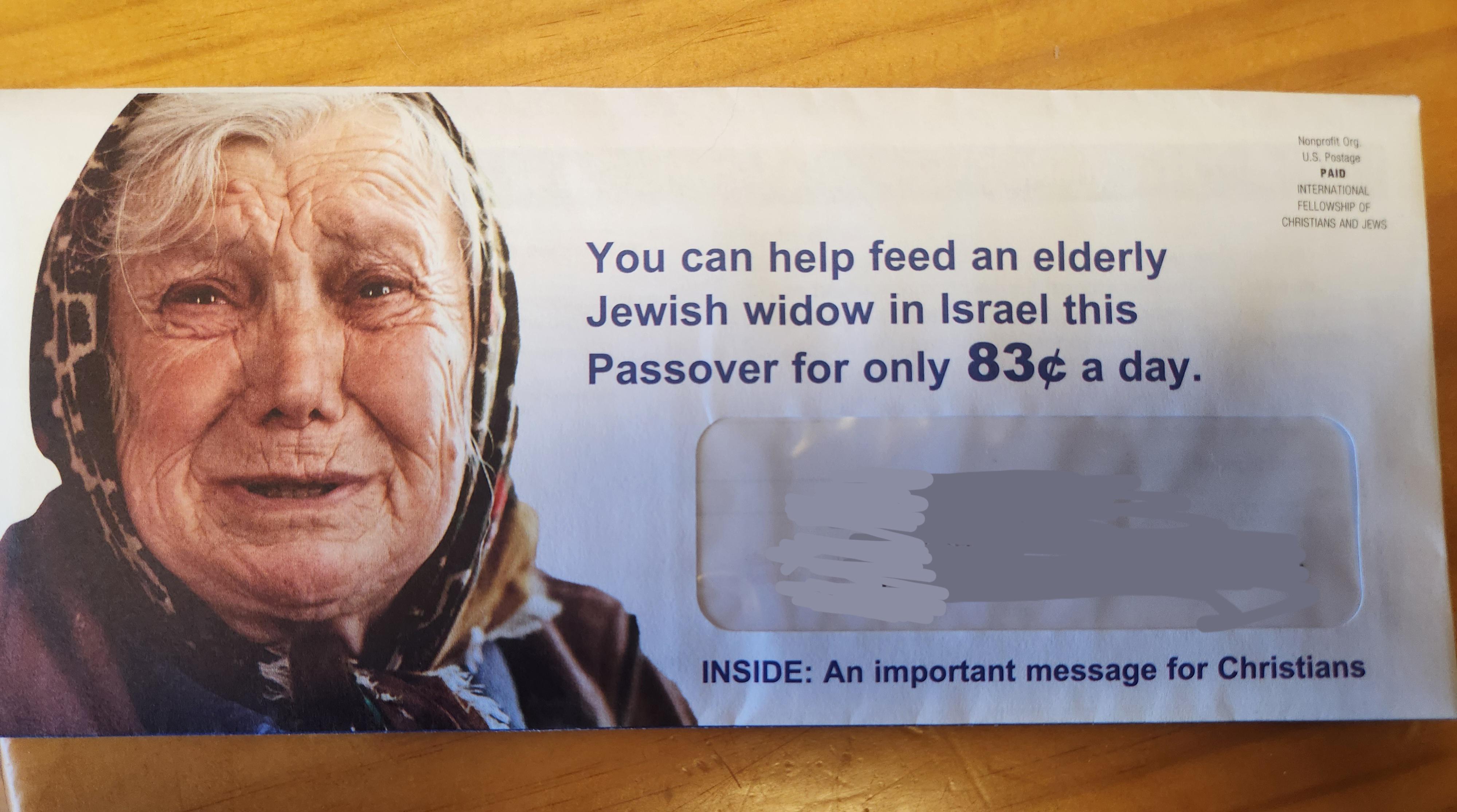 This isn't a joke. My mom signed up for HelpIsraelNow after 9/11 and will usually give when prompted. They already have her credit card, all she does is press the Send Help button and she gets an automatic email thanking her. She has over five thousand of these now and has spent over $75,000 giving to Israel. She gives more at church. She's a southern baptist btw.