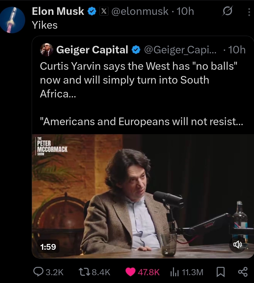 I completely disavow my former affiliation with NRx having seen what Yarvin and Land have turned into, deep cover Zionists running damage control for Israel and fellating Jews at every chance they get. It's embarrassing, pathetic and disgusting.