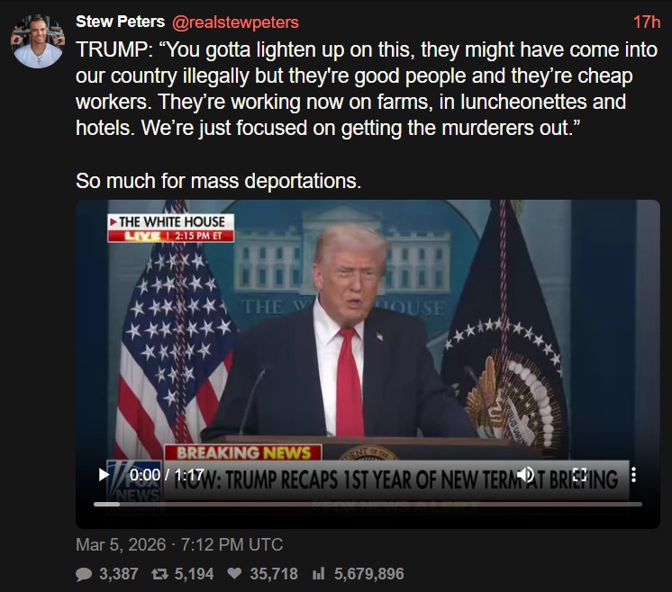 PRESIDENT DONALD J TRUMP @POTUS45https://www.donaldjtrump.com/https://www.thetrumparchive.com/https://x.com/realDonaldTrumphttps://truthsocial.com/@realDonaldTrumphttps://rumble.com/c/DonaldTrumphttps://www.tiktok.com/@realdonaldtrump>President Trump Officehttps://www.whitehouse.gov/https://www.youtube.com/user/whitehousehttps://www.flickr.com/photos/whitehouse/>Liz Harrington (Trump Spox) https://twitter.com/realLizUSA>Donald J Trump Presidential Libraryhttps://www.trumplibrary.gov/@realDonaldTrump @TeamTrump @TrumpWarRoom>b-but Trump hasnt done anything!ARCHIVED LINKS https://pastebin.com/eAhgNyeX NEW APPEARANCES>Pres Trump Announces New Tariffs After SCOTUS Ruling, Washington, DC 2/20/2026https://youtu.be/Hr4ql_ejTns>Pres Trump Georgia Rally, Rome, Georgia 2/19/2026https://www.youtube.com/watch?v=dSvsEvBq84o>Pres Trump Participates in the Board of Peace Event, Washington, DC 2/19/2026https://www.youtube.com/watch?v=vaPfxaSIc0w>Pres Trump Delivers Remarks to Fort Bragg Military Families, Fayetteville, North Carolina 2/13/2026https://www.youtube.com/watch?v=vVorrMd6lz0>Pres Trump Announces Massive Deregulations, Washington, DC 2/12/2026https://www.youtube.com/watch?v=JnkR8MbPKaE>Pres Trump Participates in the Champion of Coal Event, Washington, DC 2/11/2026https://www.youtube.com/watch?v=jBfm-1j30eE>Pres Trump Makes an Announcement on TrumpRX, Washington, DC 2/5/2026https://www.youtube.com/watch?v=LYrCH0vwxSI>Pres Trump Announces Strategic Critical Mineral Reserve, Washington, DC 2/2/2026https://www.youtube.com/watch?v=Y_vKqEbZw9s>Pres Trump Signs Executive Orders, Washington, DC 1/30/2026https://www.youtube.com/watch?v=E9y3yfTAUaE>TrumpVideo: WE WILL WIN 6/19/23https://rumble.com/v2v6m2a>MAKE AMERICA GREAT AGAIN, AGAIN! 10/28/21https://rumble.com/voe8gm>God Bless the USA (Donald J Trump) 10/20/16https://youtu.be/O_PC_fy0fk0 OP pastebin: http://pastebin.com/X4KiALfhprev >>530107604