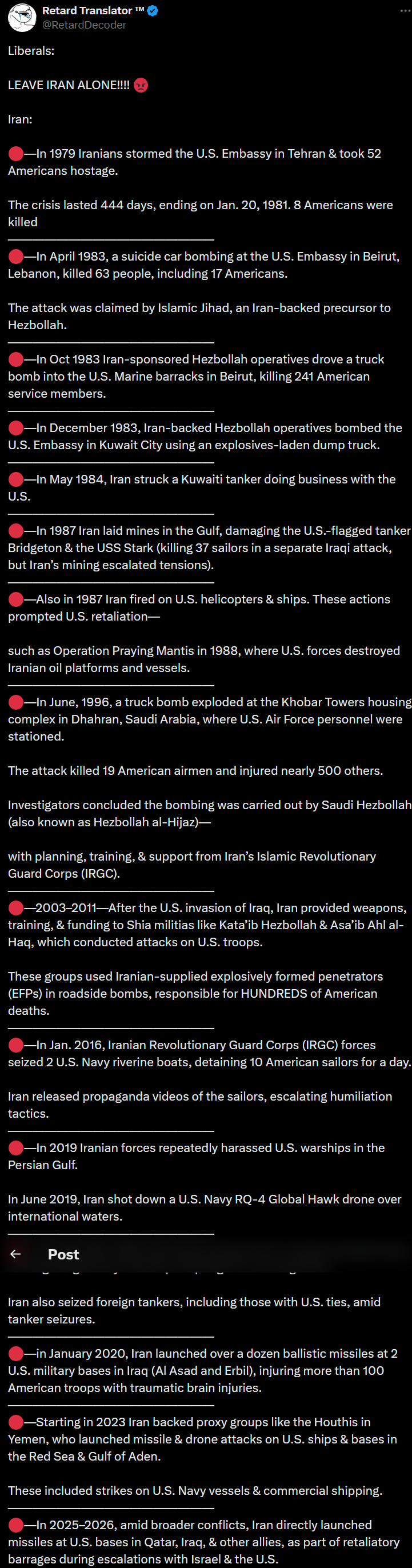 >>530117338Iran just can't stop fucking up and making everyone mad lol
