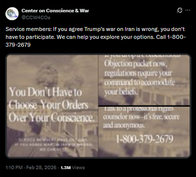 If you agree the zio war on Iran is wrong, you don’t have to participate. We can help you explore your options. Call 1-800-379-2679. I do not work with them and am not affiliated with them whatsoever but you do not need to and should not come home in a coffin or murder people arbitrarily because our government is cucked by satanist "Israel." Iran sucks fucking shit; Israel is even worse. Fuck them both to Hell forever. The way to serve Christ and promote goodness is to live, and to not die or kill for satan. Christ is King.