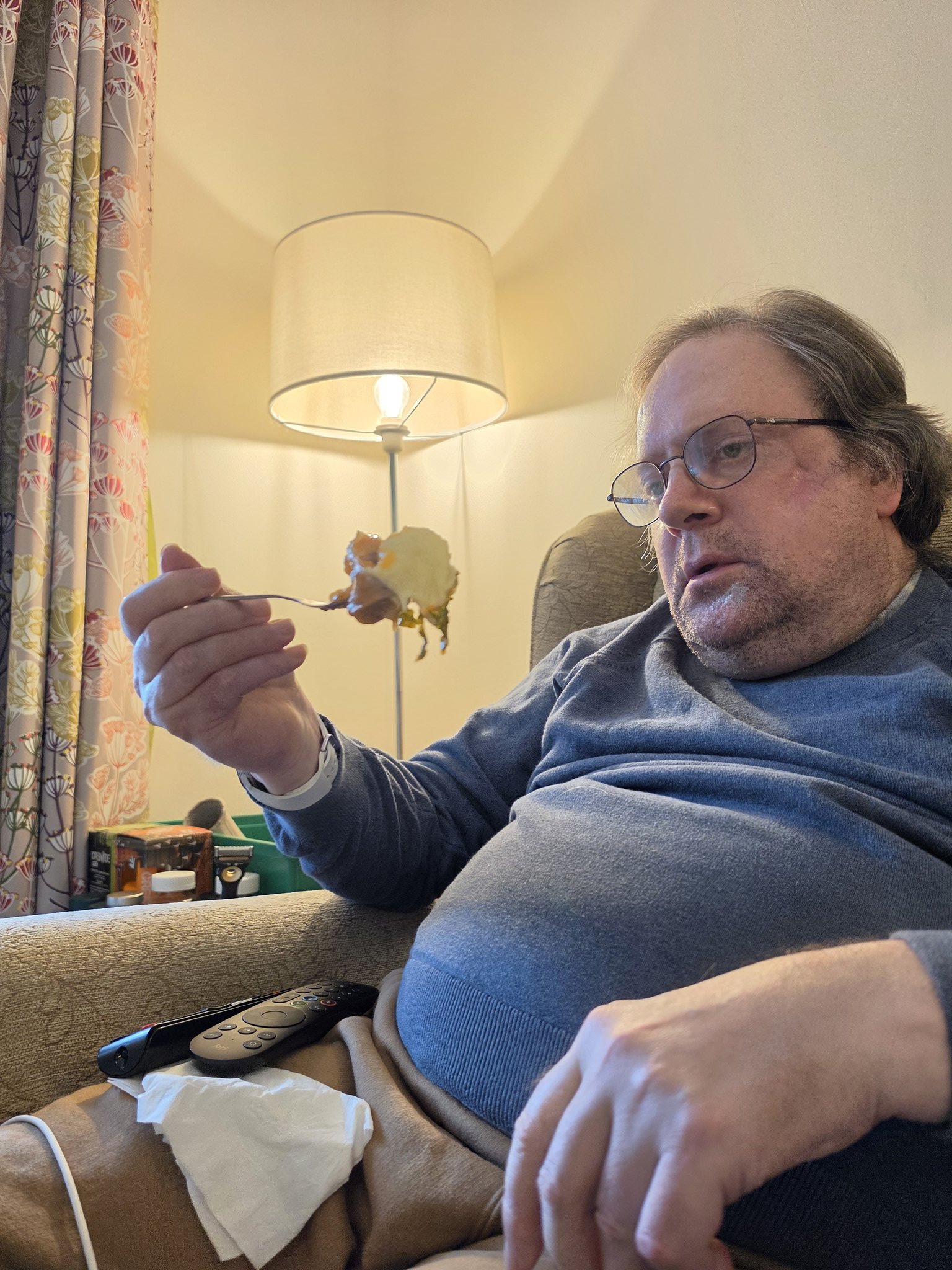 ... lunchtime wearing my excellent glasses watching Live DP World tour Golf on sky sports golf on my TV via sky stream in home ...