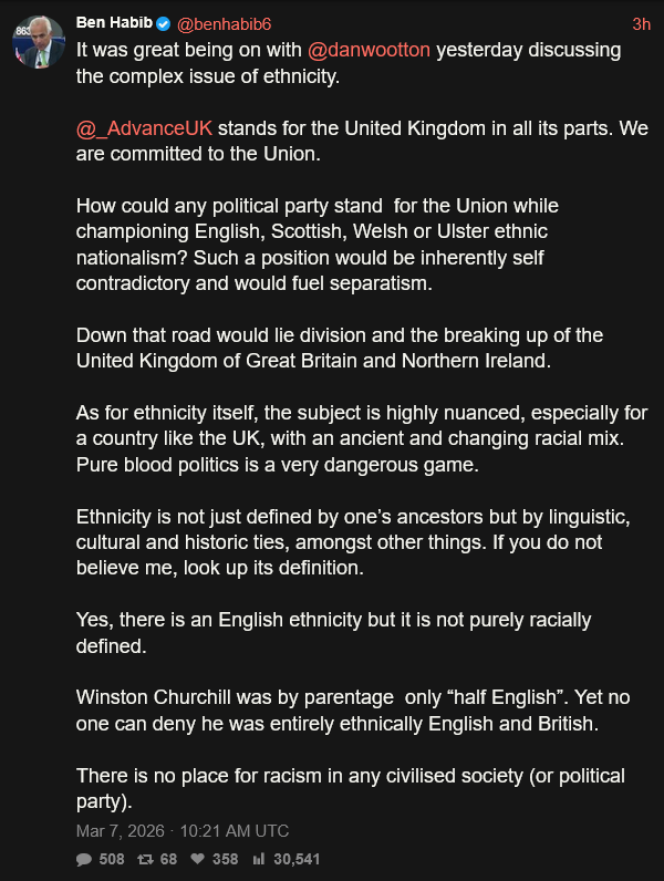 racism has no place in the Restore party - partially because there are no bames! can you believe that??? here at Reform UK we take a genuine stance against racism by committing that 50% of our MP candidates are bame, we dont dog whistle or shy away from the race question like restore nazis do, we embrace it.