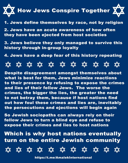 Doesn’t work because both groups are explicitly 100% Jewish and further Jewish goals. It would be like saying “It’s not the Catholic Church, it’s just the Vatican”. He’s argued himself into a hole where noticers can easily tell he’s controlled opposition because he threw his darts at the center but refuses to admit it’s a bullseye; everyone can tell he’s skirting around the issue with such obvious and desperate intent, that his goal must be nothing more than to prevent the issue from being discussed.