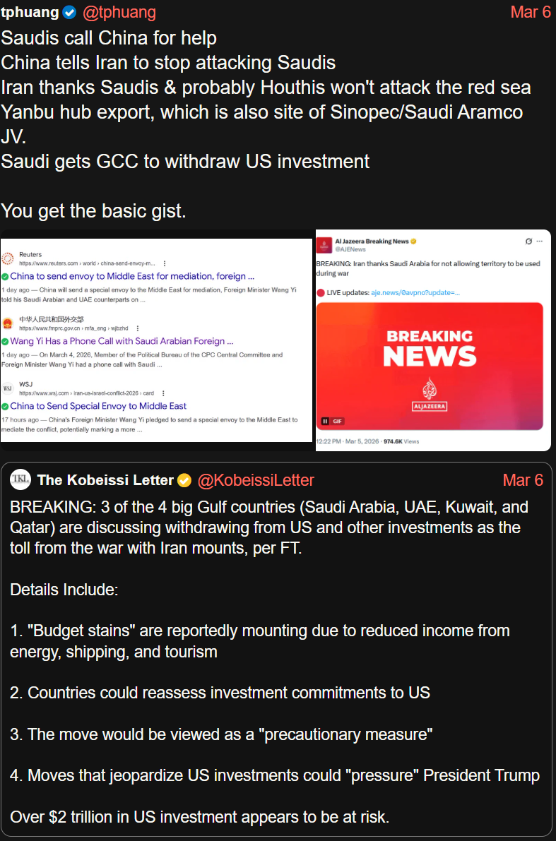 It makes sense, the Saudis were already pivoting towards the Chinese side even BEFORE Israel struck Qatar's capital. This has basically ensured that the US will lose most of its leverage over the gulf states (with the exceptions of the UAE, Bahrain, and possibly Kuwait) as well as Turkey. I think the worst part about all of this is that it was completely avoidable and didn't need to happen, Trump's just a kike'd faggot who raped kids.