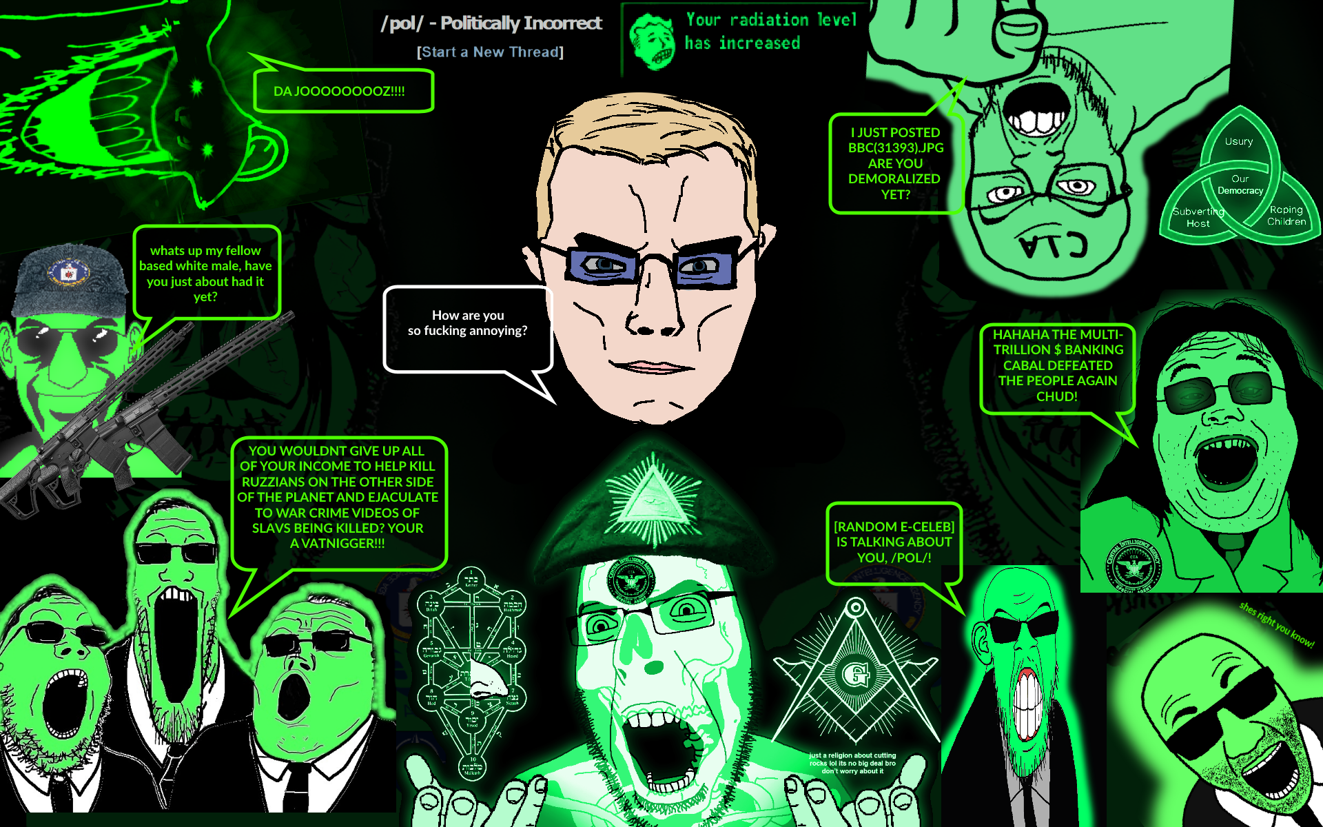 However, if you're tired of this fucking dumb same-shit-spam-fagging nu/pol/ sliding psyOps agitprop concern trolling shill catalog, let me tell you moar bad news. It's not going to get better from now on, only worse. So you should join my chat if you want to chillax and get some actual any coherent discussion going, actual based half-assed critical geopolitical analysis, almost-shitposting-level international power structure research, schizo effort-posts, banters and all worshipful of Saint. Terry A. Davis etc