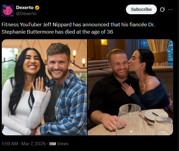 >Stephanie Buttermore, ex-bodybuilder, Jeff Nippard's fiance, passed suddenly>She was known for her fitness channel, doing nutrition advice, weight loss / gain challenges and cancer research