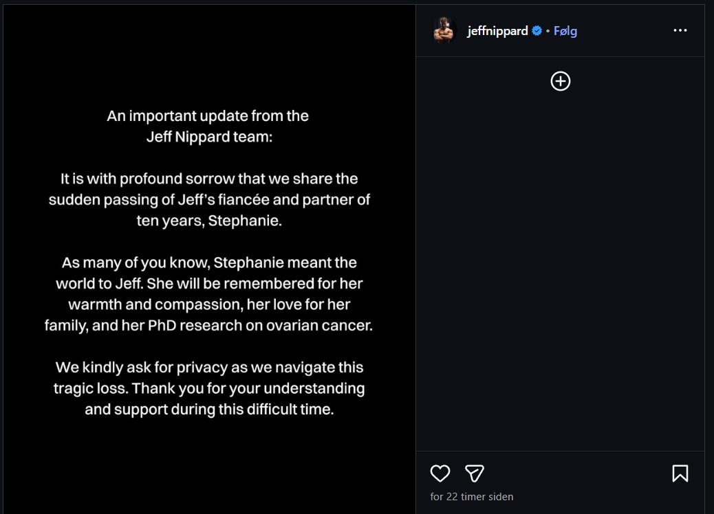 Jeff Nippard announced the sudden passing today on his Instagram