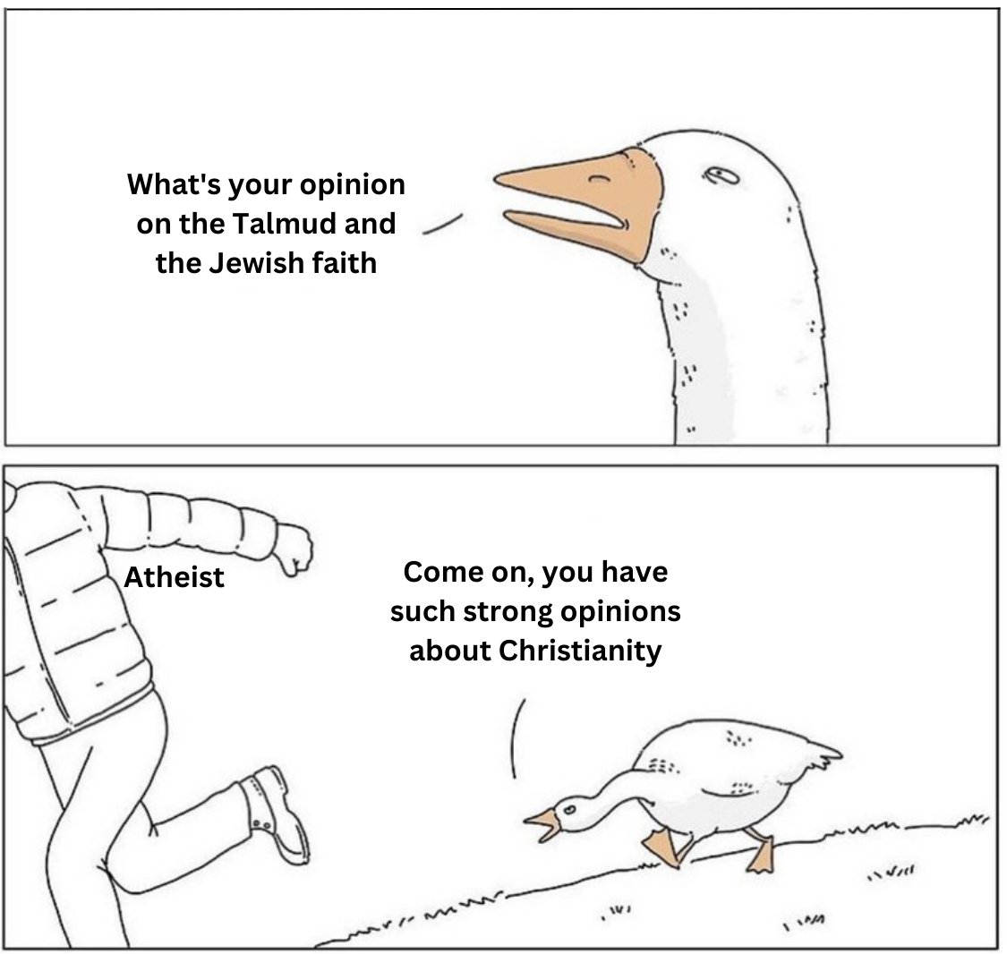 >>530148175Tbh your average Jew doesn't know what the talmud is. But they all read the torah for their bar mitzvah. Also, if anything, Christianity is a response to Judaism, the whole New Testament is saying "OK the messiah prophecy is true but everything else the Jews teach is false" which is retarded.