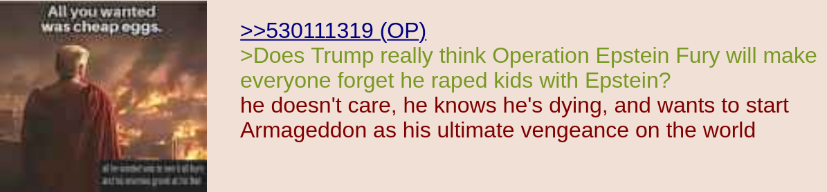 >>530147684>implying any of which matters to the average Trump supporter>implying their motives are any deeper than 'bombing third worlders because it's funny and based'