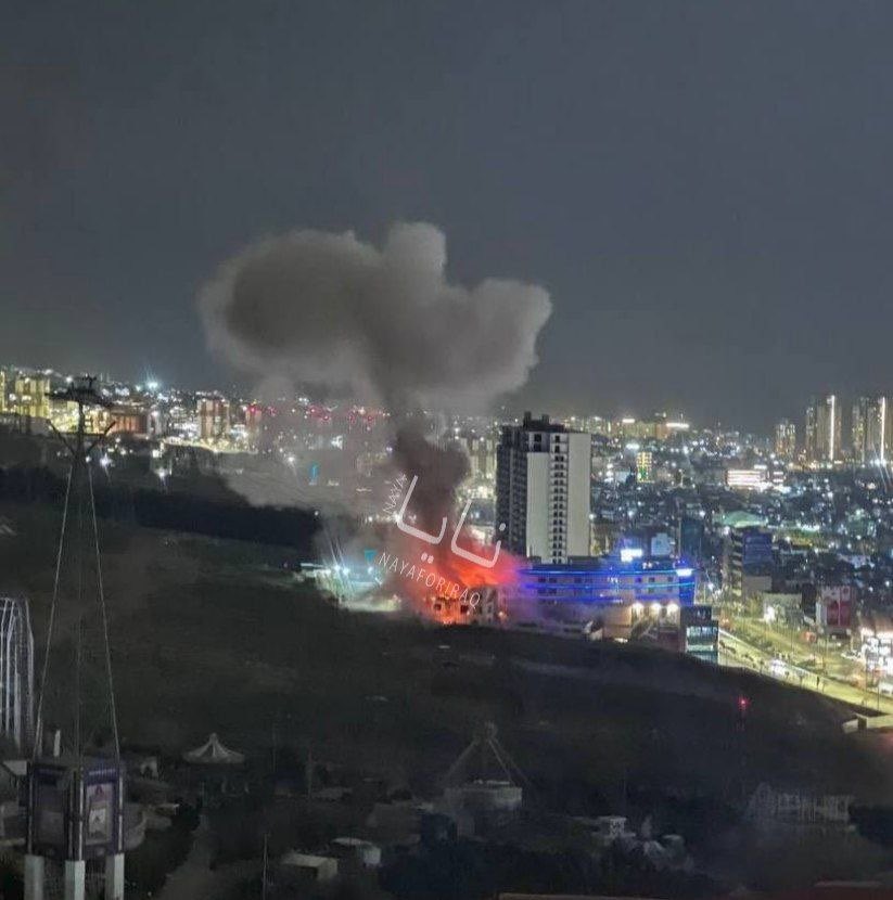 >The US base in Bahrain is still burning after Iranian missiles hit the base.