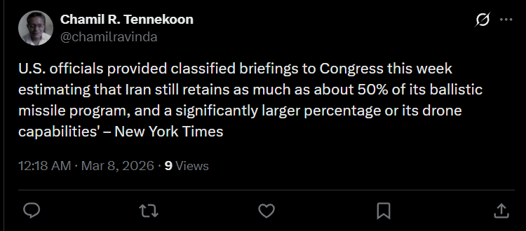 It was 50% at the end of the 12 day war too. Something tells me we've yet to see all of Iran's toys brought out.