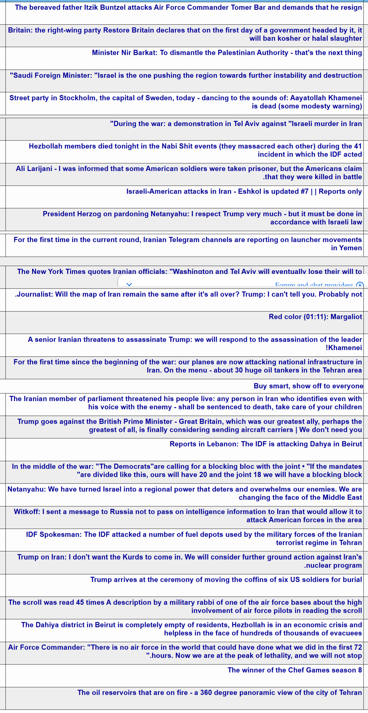 Previous: >>530153753Timeline▶Day: 9>Trump on Iran: I don't want the Kurds to get involved>US and Israeli strikes have bombed Iranian oil infrastructure in and around Tehran, all major fuel storage terminals in the capital are on fire▶Livestreamshttps://www.youtube.com/watch?v=4E-iFtUM2kkhttps://www.youtube.com/watch?v=JHwwZRH2wz8▶Telegramhttps://rentry.org/tgnews▶Twitter accounts (using proxy frontend because twitter's UI is trash):https://nitter.net/clashreporthttps://nitter.net/FaytuksNetworkhttps://nitter.net/sentdefender▶Israel Rocket Alertshttps://www.tzevaadom.co.il/en/▶Air Traffichttps://www.flightradar24.com/https://flightaware.com/livehttps://globe.adsbexchange.com▶Maritime Traffichttps://www.marinetraffic.com/https://www.vesselfinder.com/Note: /pig/ is the only general for this event. Do not split it into dueling generals like /uhg/ and /chug/ or turn it into a support thread for either side.