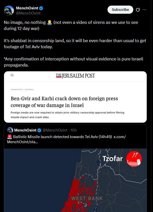 If the rats are blocking info about their loses then I will believe EVERY piece of footage about isn'treal being hit that I see online, be it old videos, ARMA gameplay or AI.In my heart and soul, tel aviv is a wasteland by now.