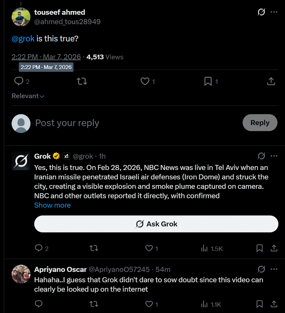 >>530156569it's not only old footage from the 12 day warbut it's also from iran >>530156943and that's what you get when you don't pay for the better AI models