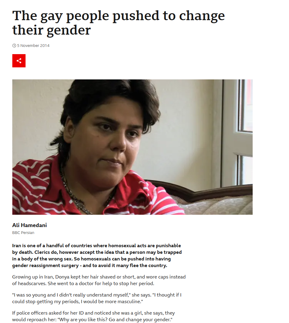 >>530157699they offer to send you to iran to be trans Those that bless trannys, will be bless. Those who curse trannys will be cursed>Transgender individuals in Iran face a complex reality where gender reassignment surgery is legal and sometimes state-sanctioned, yet they experience significant social stigma, discrimination, and violence. While sex reassignment is officially recognized in Iran, this legal allowance often serves to "cure" homosexuality, resulting in pressure on gay individuals to transition.>Legal Standing: Gender reassignment surgery is permitted under a 1980s fatwa by Ayatollah Khomeini, and the government may provide partial funding.>Social Stigma: Despite legal recognition, transgender people often face severe rejection from family, society, and employers, leading to high rates of poverty, unemployment, and homelessness.>Coerced Transitioning: LGB individuals are sometimes pressured to undergo reassignment surgery to conform to heterosexual norms, as homosexual acts are criminalized.>Healthcare Access: Transgender people, known as "tarajinsi" (تراجنسی), often face a long, difficult medical and legal process to change their legal documents.https://outrightinternational.org/our-work/southwest-asia-and-north-africa/iranholy fucking kekhttps://www.nytimes.com/2025/10/10/world/middleeast/iran-transgender-surgery.htmlhttps://www.berghahnjournals.com/view/journals/ame/20/1/ame200102.xmlhttps://discoverpsych.utm.utoronto.ca/focus-on-research/games/gender-diversity-across-cultures/transgender-people-in-iran/