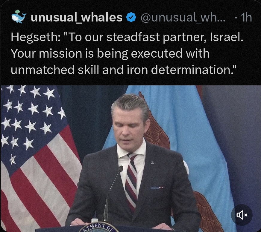 "To our steadfast partner, Israel. Your mission is being executed with unmatched skill and iron determination".https://x.com/i/status/2030403366342320307
