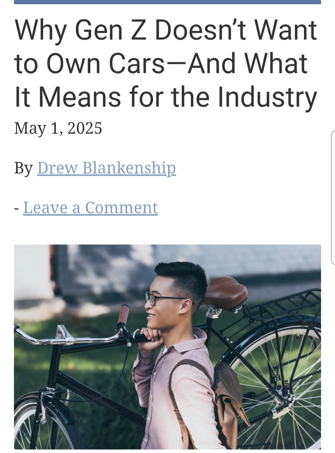 Priming soft disclosure. Gen z doesn't want carsGen z doesn't want to take out a 30k loan for a car that will fail in 5 years. Gen z tales Uber and LyftIt's setting the stage for robot taxis. It's a press release from a robot taxi service.