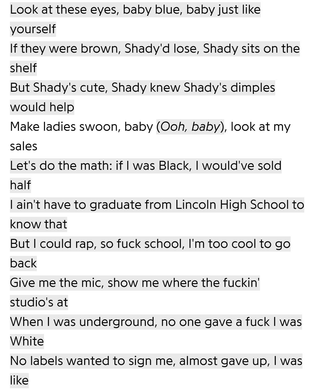 >>530172047who wrote eminems songs? thats damning af. was it that slim shady dude?