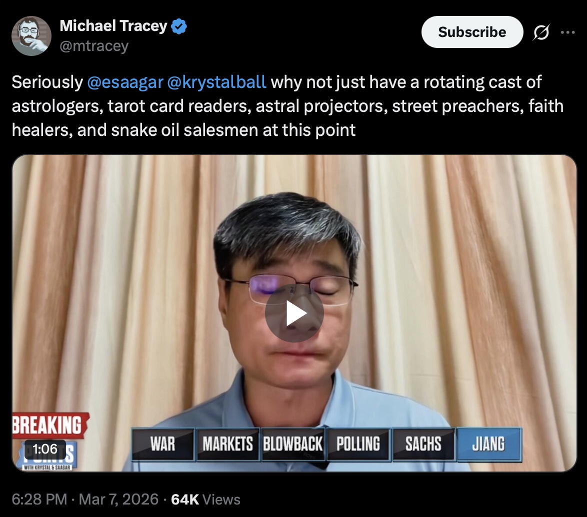 Michael Tracey? The guy who spread the lie of Iran beheading babies and died on the Epstein hill?