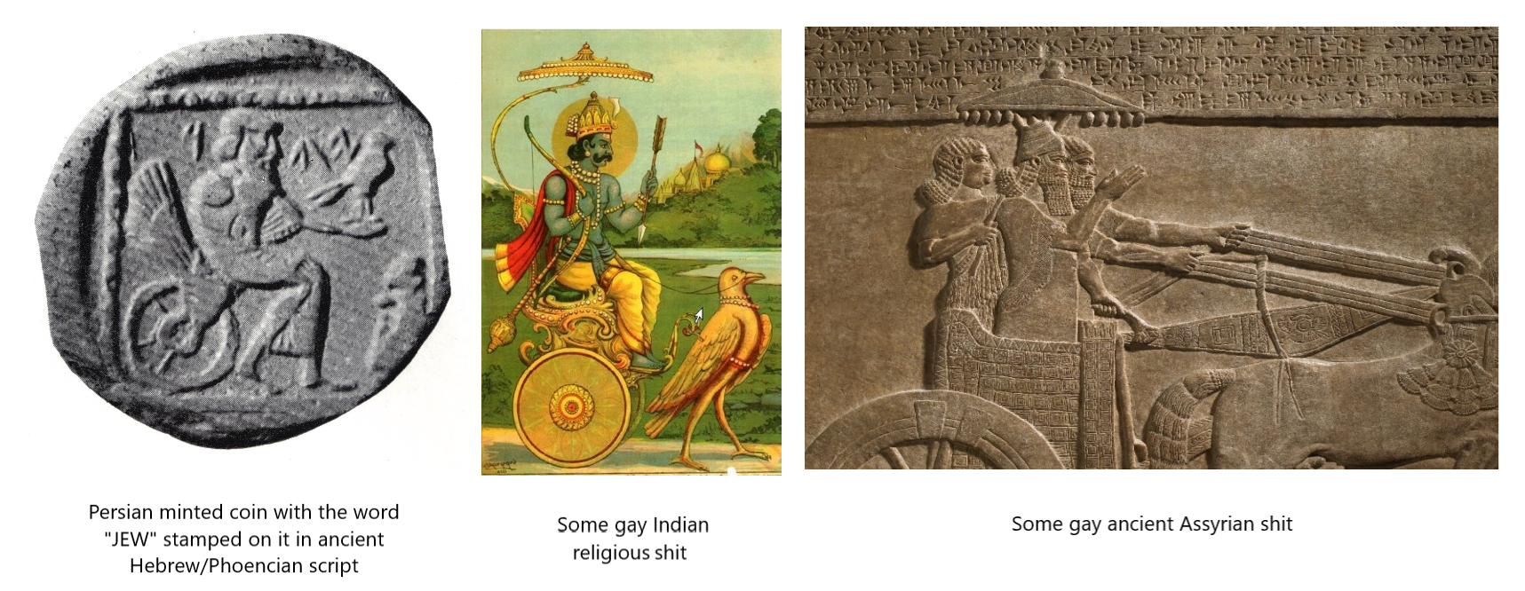 >>530171712The Greeks at least had a completely different culture from the Jews and the Jesus Cult (these are the English equivalent of then co-existing ethnic groups about 100-200 AD). The Jews wrote history compulsively about their leaders and had a tradition of unbroken literature striving for the dawn of time. This is all a priestly-kingly tradition. The Europeans, and not the Africans or the Asians (whatever you call ancient Jews), had democracy, schools, alliances of city-states, Republics, common decency, you know all the White People European Western Civilization stuff. It's all Greek! Well Greece was the only place to adopt the Jesus cult because the Greeks loved wine. Wine God was familiar at least. Rome adopted Greek culture habitually and so the great Empire of the time became Christian. Then it fell and then the pagans fell with it.