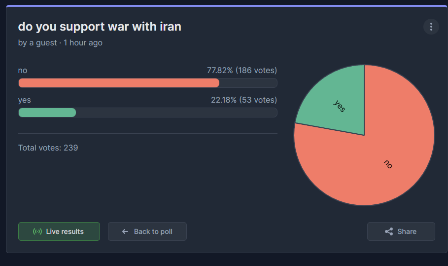 >>530178846daily reminder that shills were not ready to rig this poll,shills on this board and asmonghold speaks for less than 20%https://strawpoll.com/ajnE1qe1BnW/results