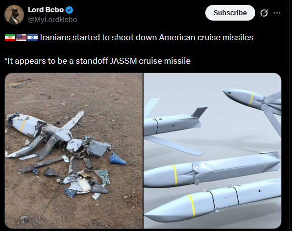>>530191269Because Iran shit down a JASSM, if they controlled the airspace the standoff munitions would be unnecessary