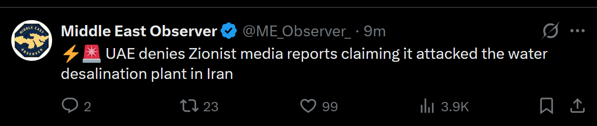 >>530200337>UAE carried out an attack on a desalination plant in Iran - i24NEWSalready proven to be israeli fake news