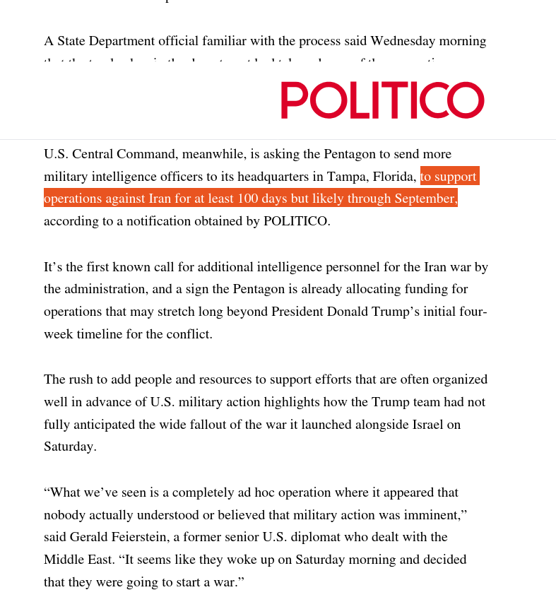 >>530200337RECAP ▶Week: 1>Qatar's energy minister warns oil prices could rise to $150 within two weeks, as crude oil futures stretch toward $90 a barrel>Iran's ballistic missile attacks have declined by 90% since the first day of the war - Pentagon>43 Iranian warships and a submarine has been sunk in the Gulf of Oman — CENTCOM>Hezbollah joins the war, Israel launches ground invasion of Lebanon and orders evacuation of towns south of the Litani river>Traffic through the Strait of Hormuz is suspended>Iran launches ballistic missiles & drones at: Israel, Saudi Arabia, UAE, Qatar, Kuwait, Bahrain, Oman, Jordan, Iraqi Kurdistan, Cyprus, Turkey and Azerbaijan>Iran's Supreme Leader Ayatollah Ali Khamenei is killed>U.S. & Israel launch a joint regime change operation against Iran, dubbed "Epic Fury"; also targeting Iran-backed militias in Iraq