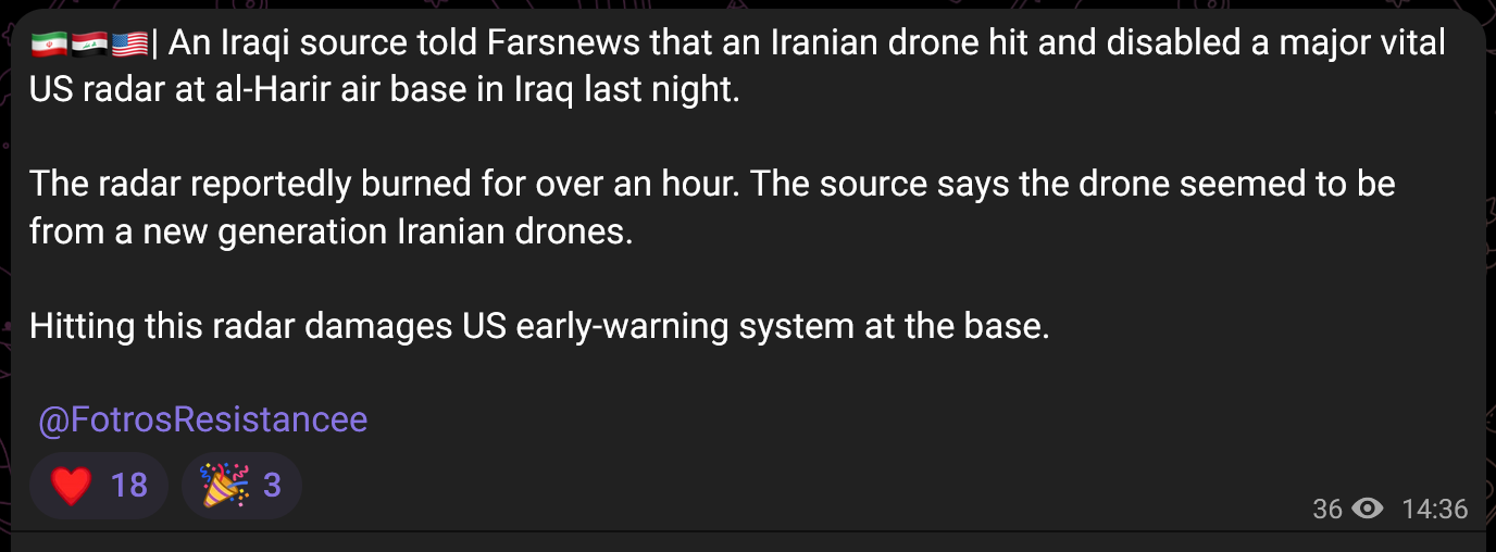>>530200590It was US forces out of Bahrain. Tehran already retaliated
