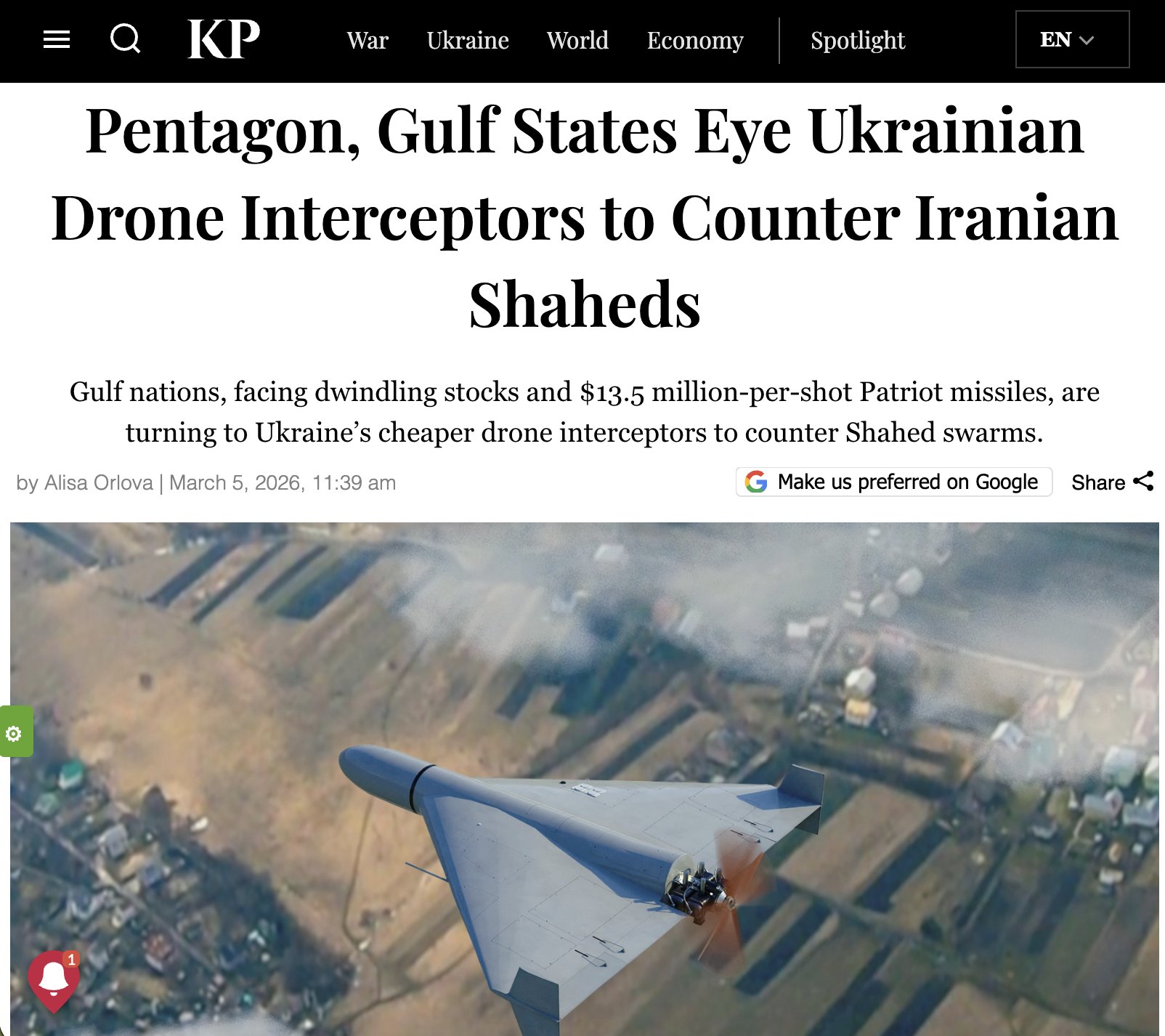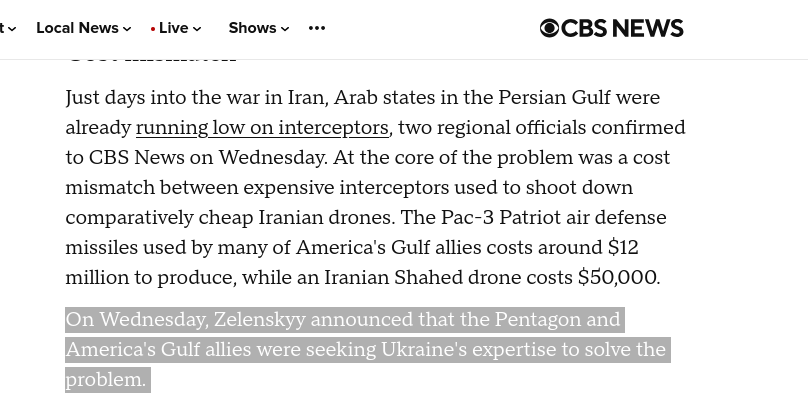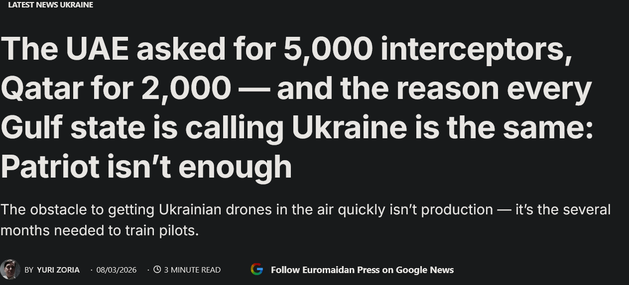 Update on burgers + arabs wanting UA anti-shahed intereceptor drones:Starting bid is for thousands of them. WSJ says in the following that Arabs have already flown to Ukraine to meet with Ukrainian defence companies in person to present their offer.>Representatives of Qatar and other Gulf states targeted by Iranian drones and missiles have traveled to meet with Ukrainian arms manufacturers