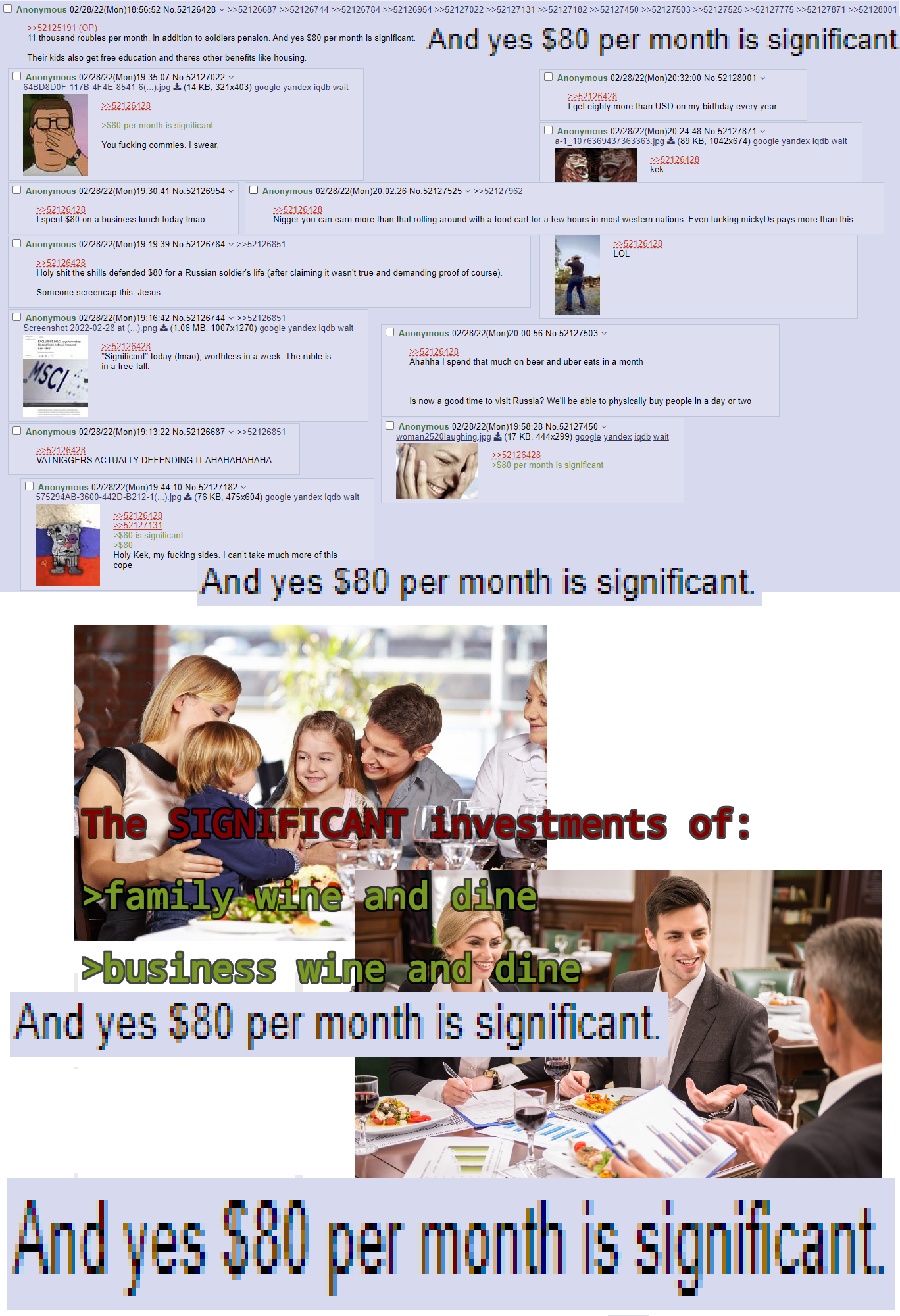 >>530211306>Just utterly bizarre behavior.Mearsh-petukh get's paid by the post. Scatzuca has a humilation fetish. The rest are buck-broken contrarians.