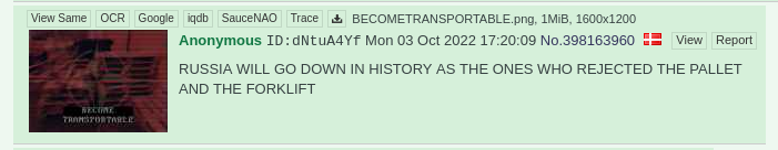 >>530225018>never get to see itNeither will the million vatniks currently being used as pigfeed.